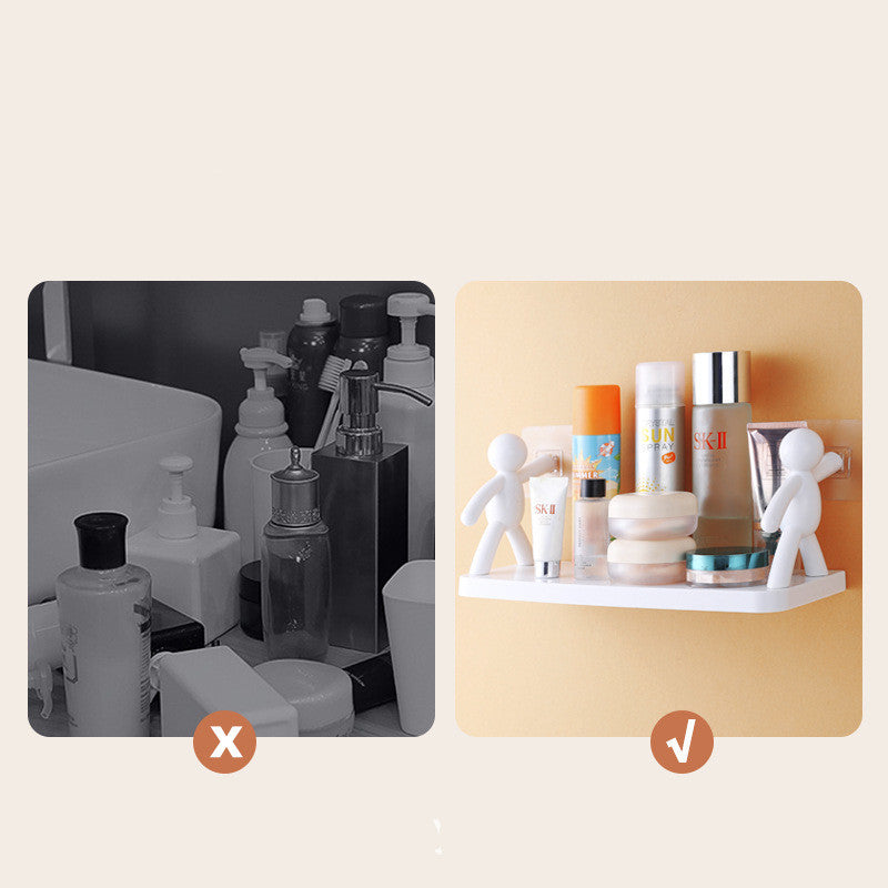 This wall-mounted storage rack has a no-punch design, is easy to install, has good adhesion, has a good load-bearing capacity and is suitable for multiple scenarios such as kitchen, bathroom and bedroom.